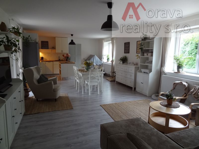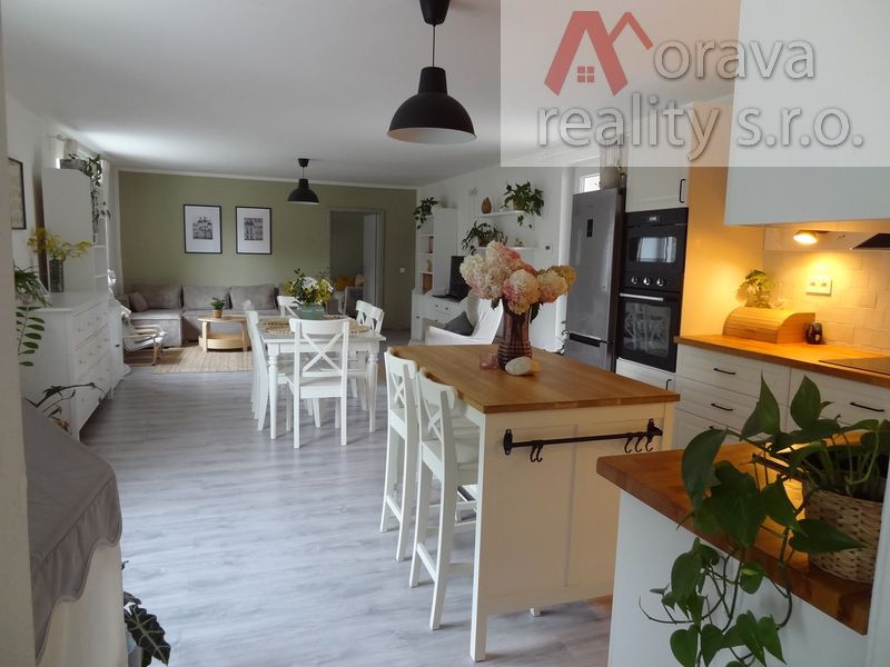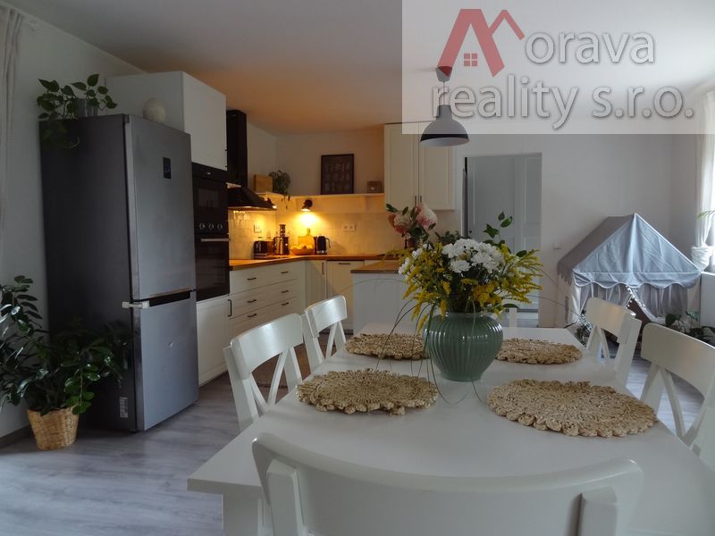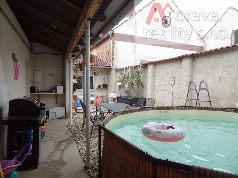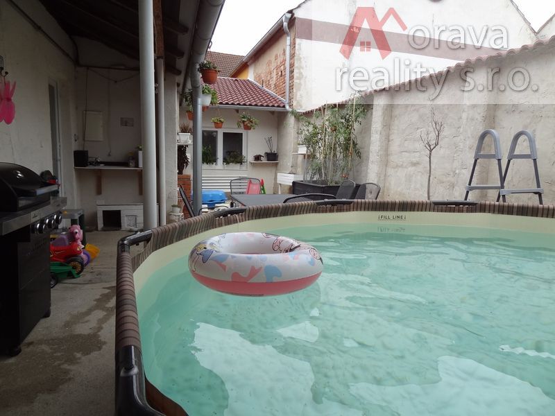 Srdcem domu je velký obývací pokoj s novou, plně vybavenou kuchyňskou linkou. Z obývacího pokoje se jde do dětského pokoje a do ložnice a pak na uzavřený dvůr, který přímo vybízí k relaxaci v bazénu, grilování, či jen odpočinku.