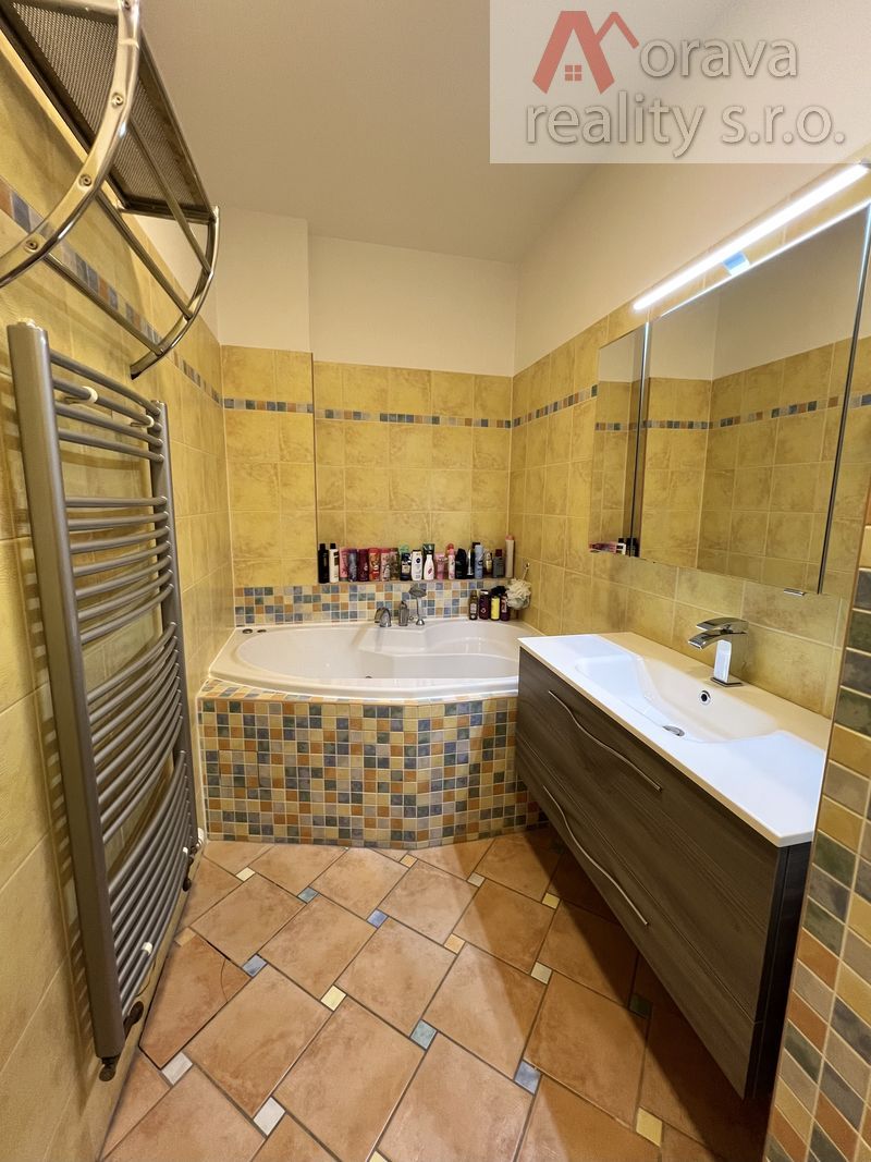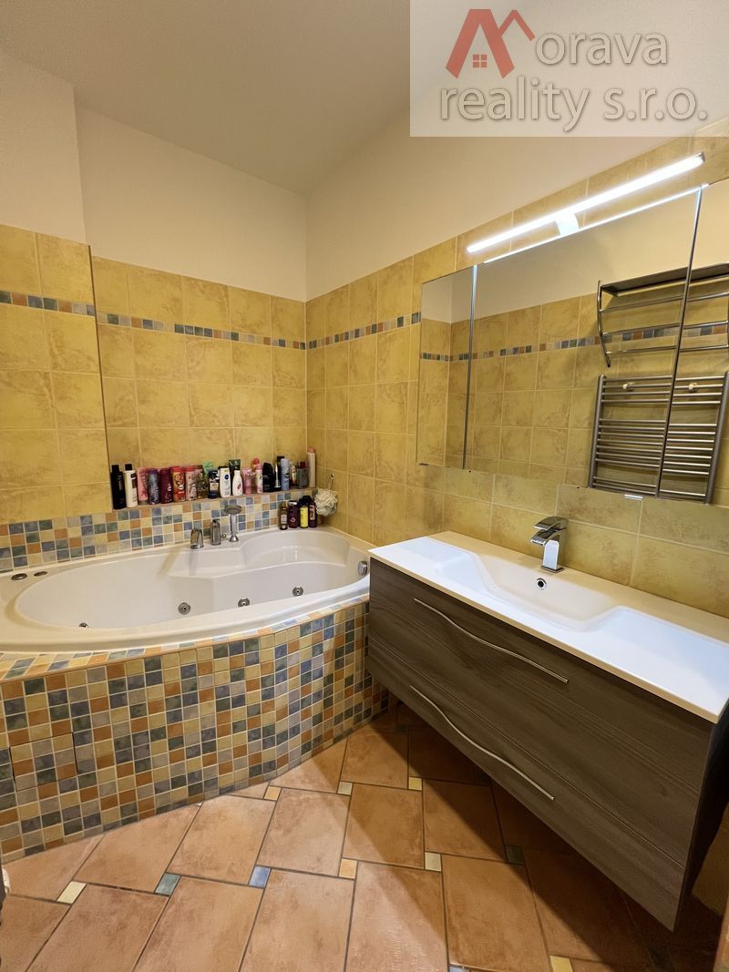 Koupelna má hydromasážní vanu, WC je samostatné.